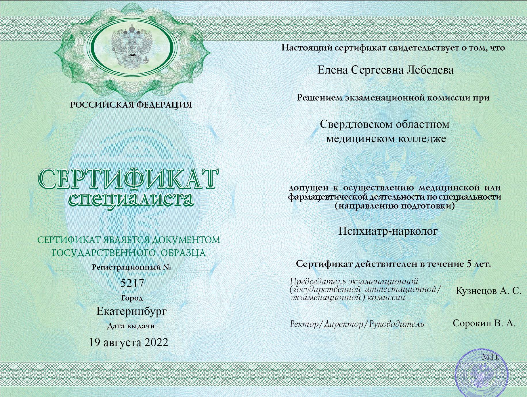 Елена Сергеевна Лебедева врач нарколог клиники доктора Стукаловой в Удачном